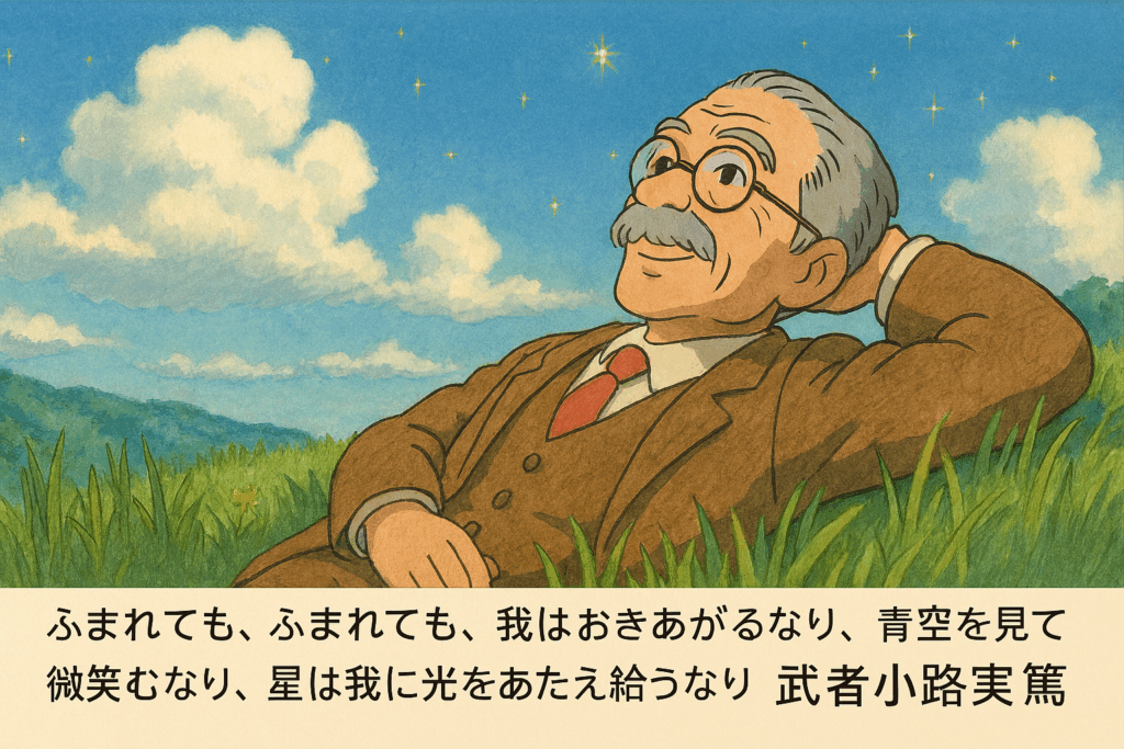 ふまれても、ふまれても、我はおきあがるなり、青空を見て微笑むなり、 星は我に光をあたえ給うなり 武者小路実篤 レジリエンス名言